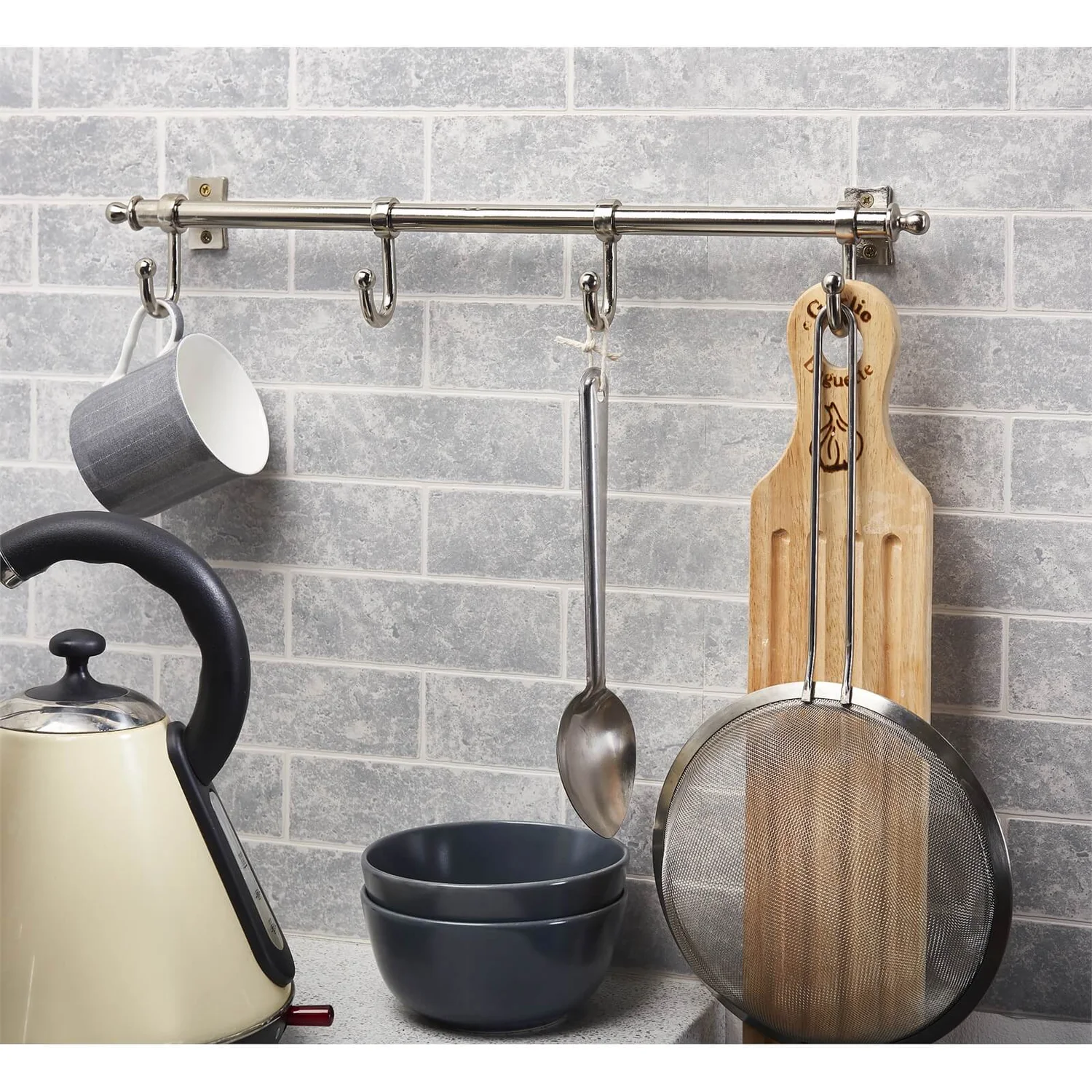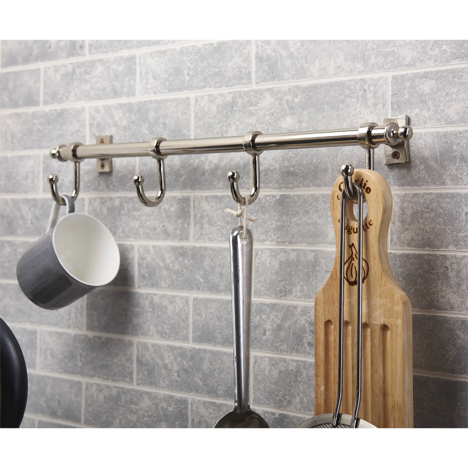 - Can be used for hanging clothing or in the kitchen for hanging utensils. Easy wall mounting with fixings provided.
