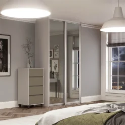 Shaker 2 Door Sliding Wardrobe Kit Mirror With Dove Grey Frame (W)1449 X (H)2260mm