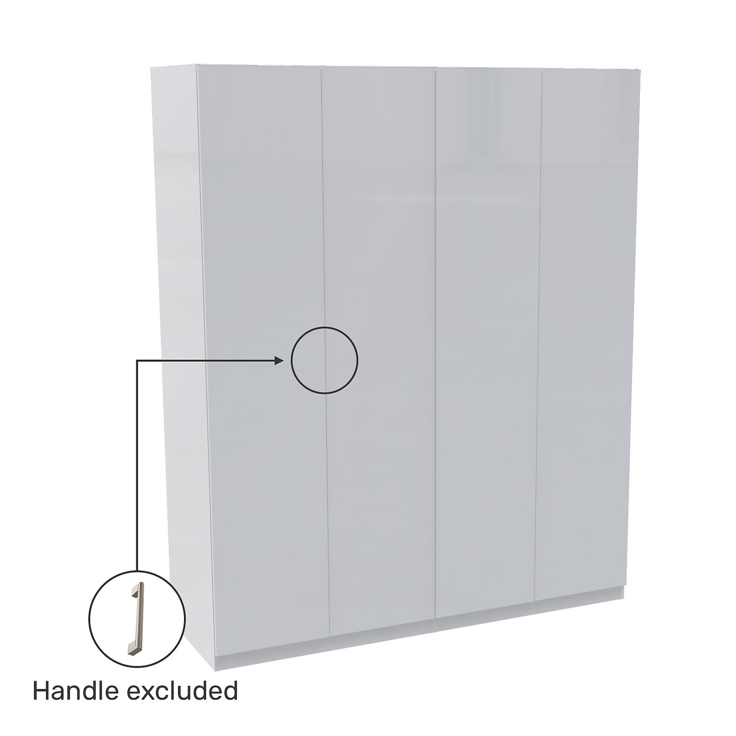 The House Beautiful range is exclusive to Homebase and offers a selection of different finishes and storage configurations to suit your needs. With a range of carcass colours and contrasting door designs, you can select the look to fit your bedroom aesthetic. This four door wardrobe (2 x double units) features a white carcass and beautiful gloss white slab doors for a modern sleek look. The wardrobe features premium soft close clip-on Blum hinges, two shelves and two hanging rails. You can customise your wardrobe with our additional internal storage options (available separately) including internal drawers, shelves, dividing shelves and extra hanging rails. Choose your handles from our range of both traditional and modern to suit your desired look.