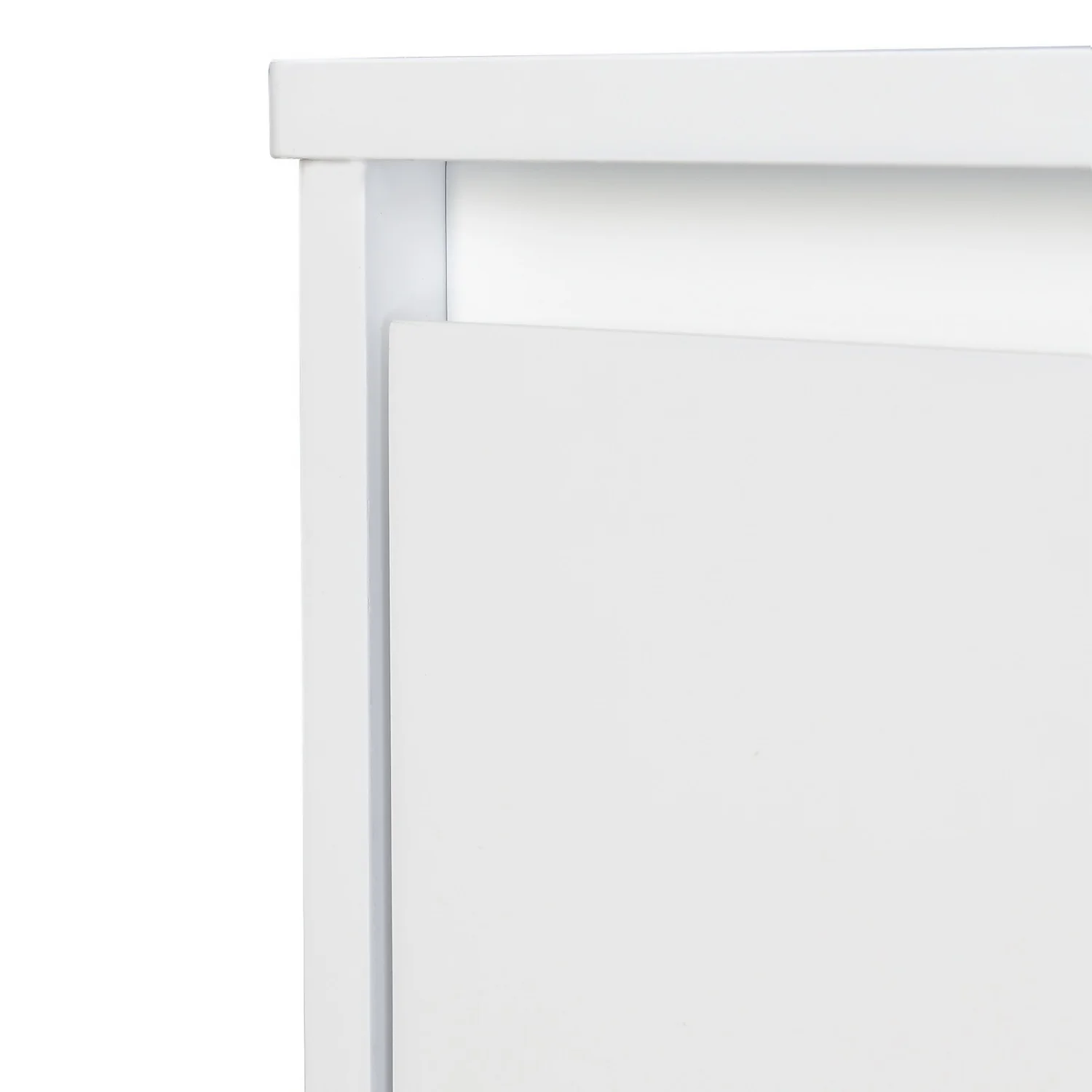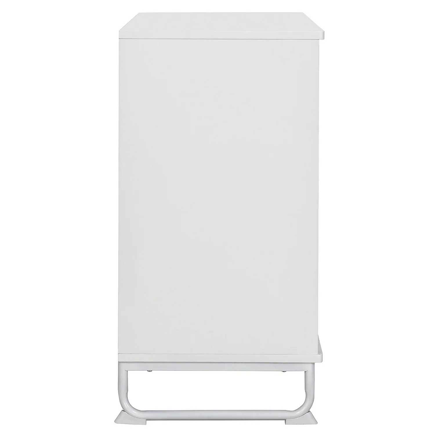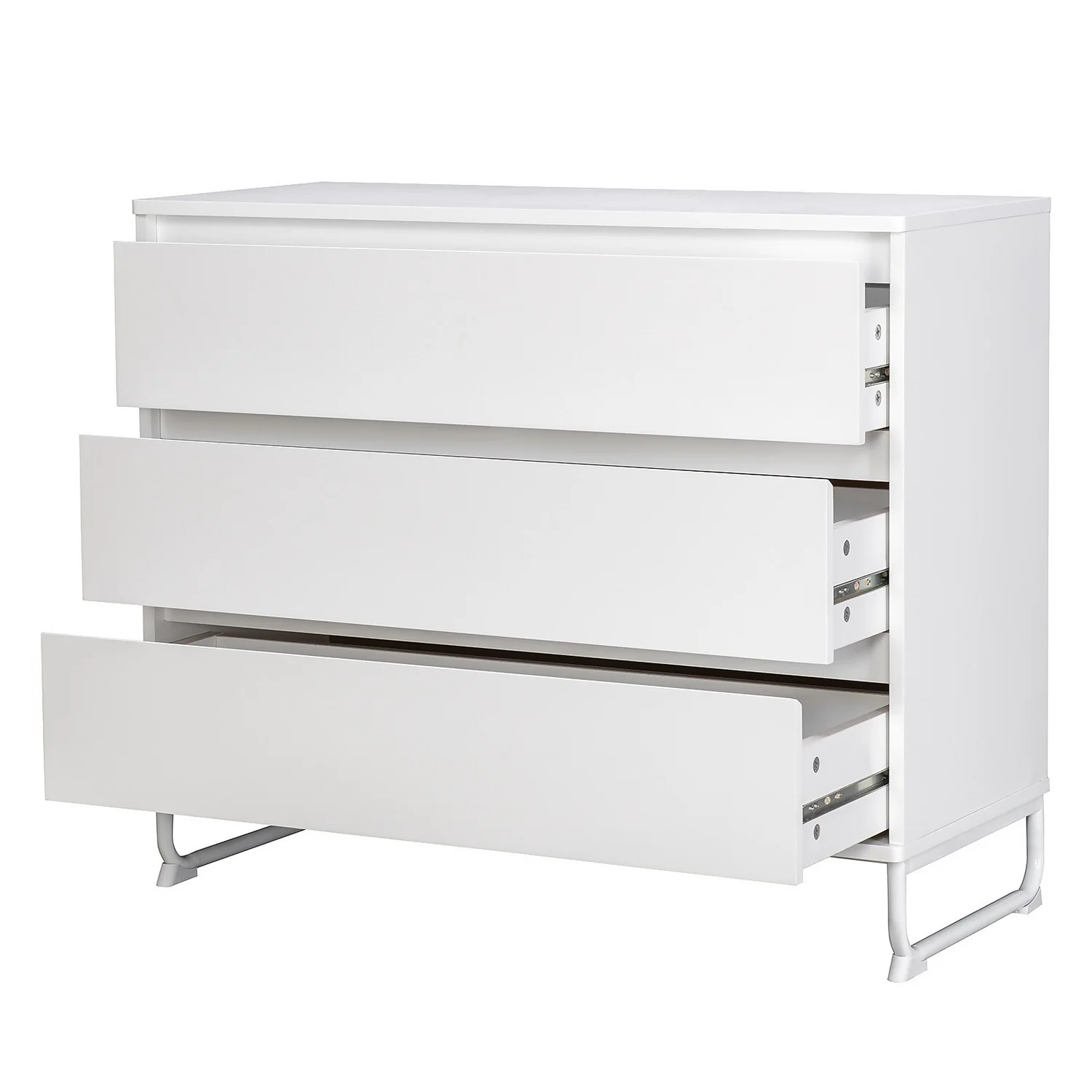 Hello Milo. Perfect for busy, everyday life in your home, the Milo chest of drawers has an easy modern vibe. Three handleless drawers give this piece smooth lines while the white lacquer finish keep Milo looking clean and fresh. It’s raised on sturdy, metal ski legs to give a sleek finish.
