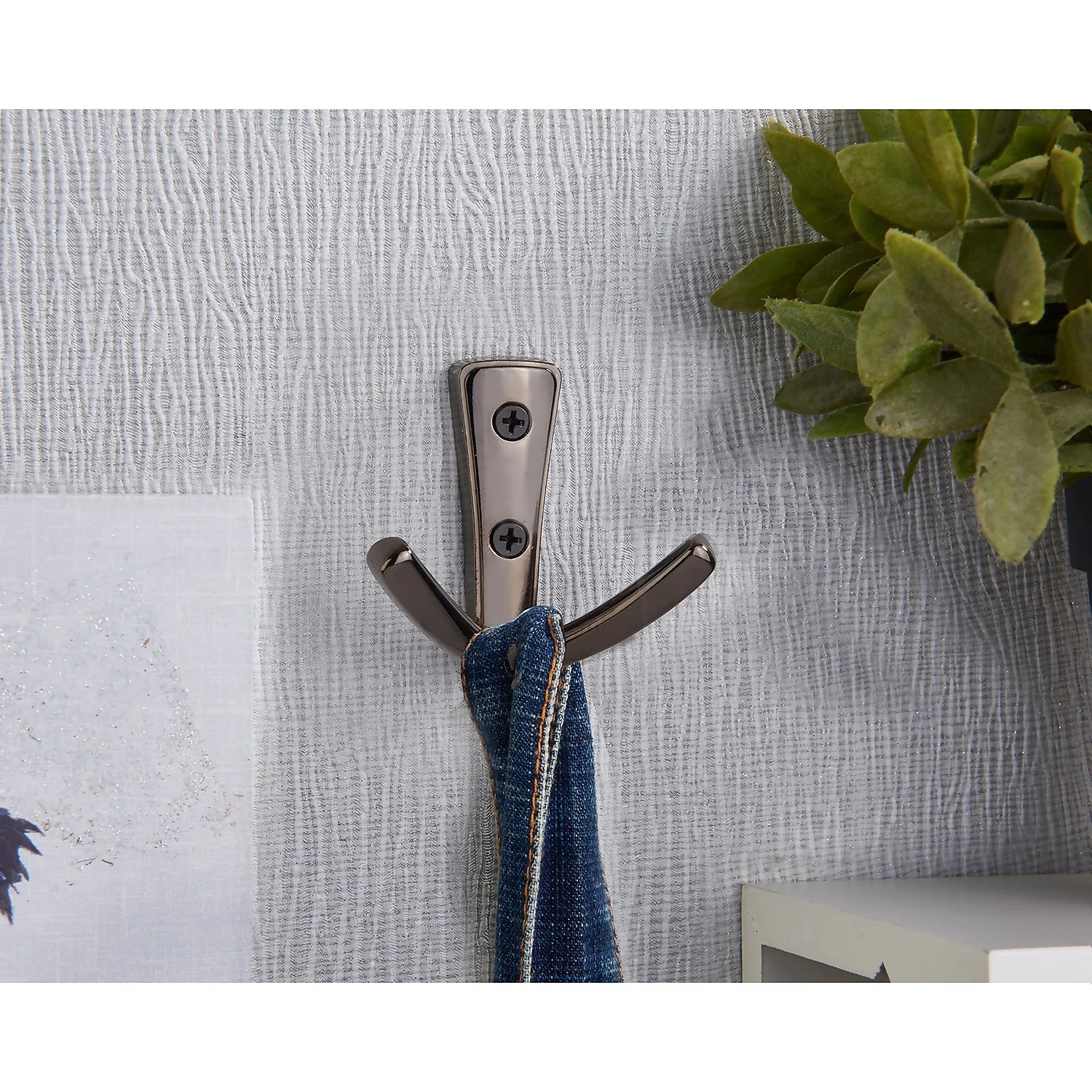 Fashionable yet practical twin hook in a modern black nickel finish.
